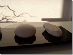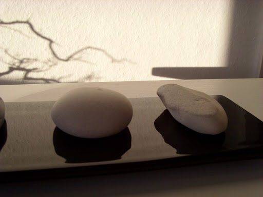 Zur Zeit werfen die Steine, der Bonsai, der Zweig wunderschöne Schatten am Morgen. - Wenn die Sonne scheint.