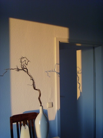 Dazu die ersten Konturen des Tages an der Wand, im Raum - der Tag lebt ...