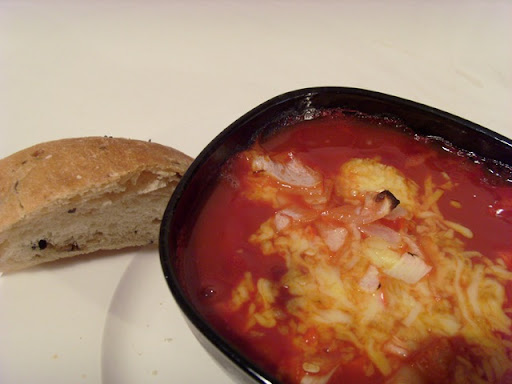 etwas Käse, etwas frischer Zwiebel,